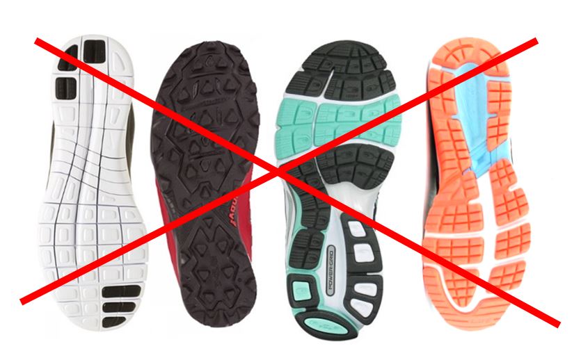 Schoenen met verkeerd profiel, zoals hardloopschoenen, gewone sportschoenen: